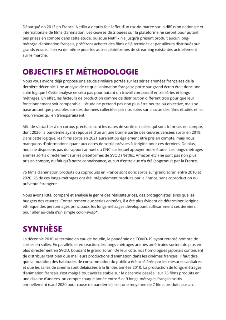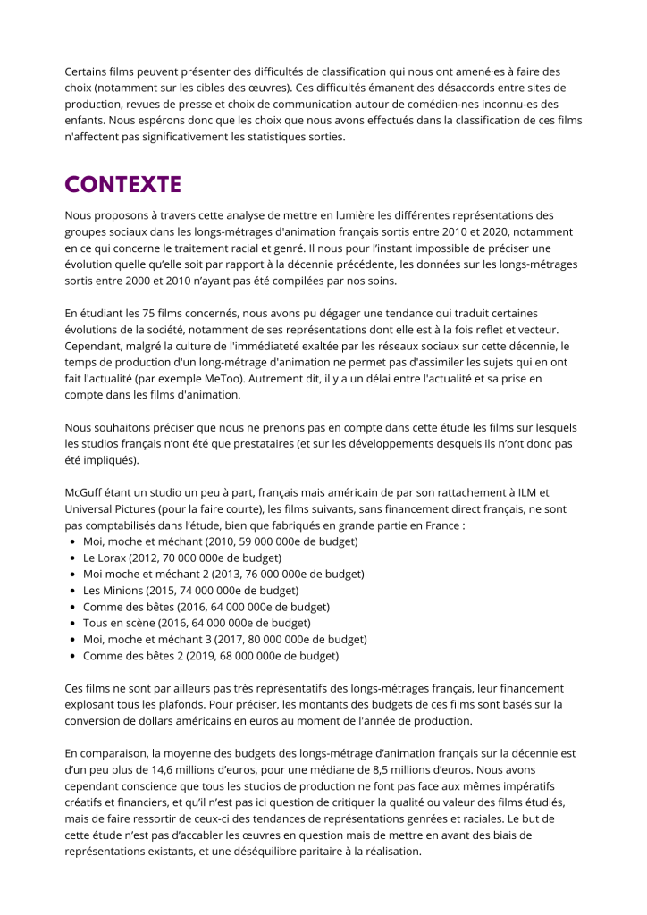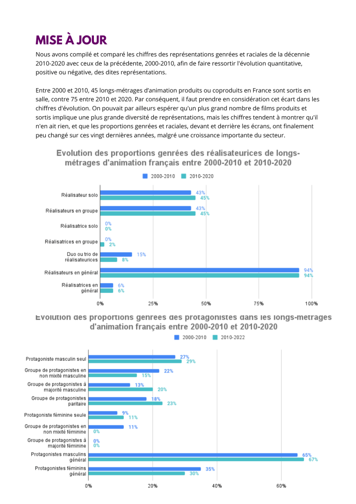 Pour faire suite à l’analyse que nous avions réalisé il y a quelques années sur les représentations genrées et raciales dans les séries animées françaises entre 2010 et 2020, voici sa petite soeur, attachée cette fois-ci aux longs-métrages d’animation produits en France durant cette même décennie.