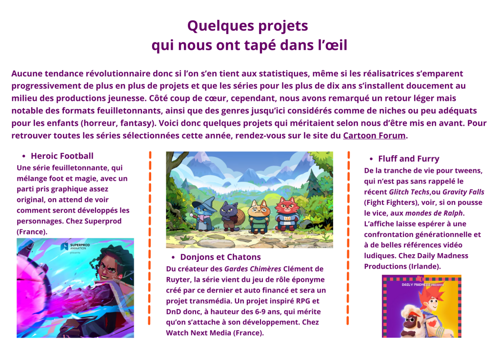 Depuis deux ans que nous couvrions le Cartoon Forum via un thread Twitter, sur la base des projets de séries annoncés sur le site de la convention, il était temps d’en faire un véritable article, et de mettre en avant les tendances du moment qui ressortent de cette importante rencontre européenne pour la production de film d’animation.