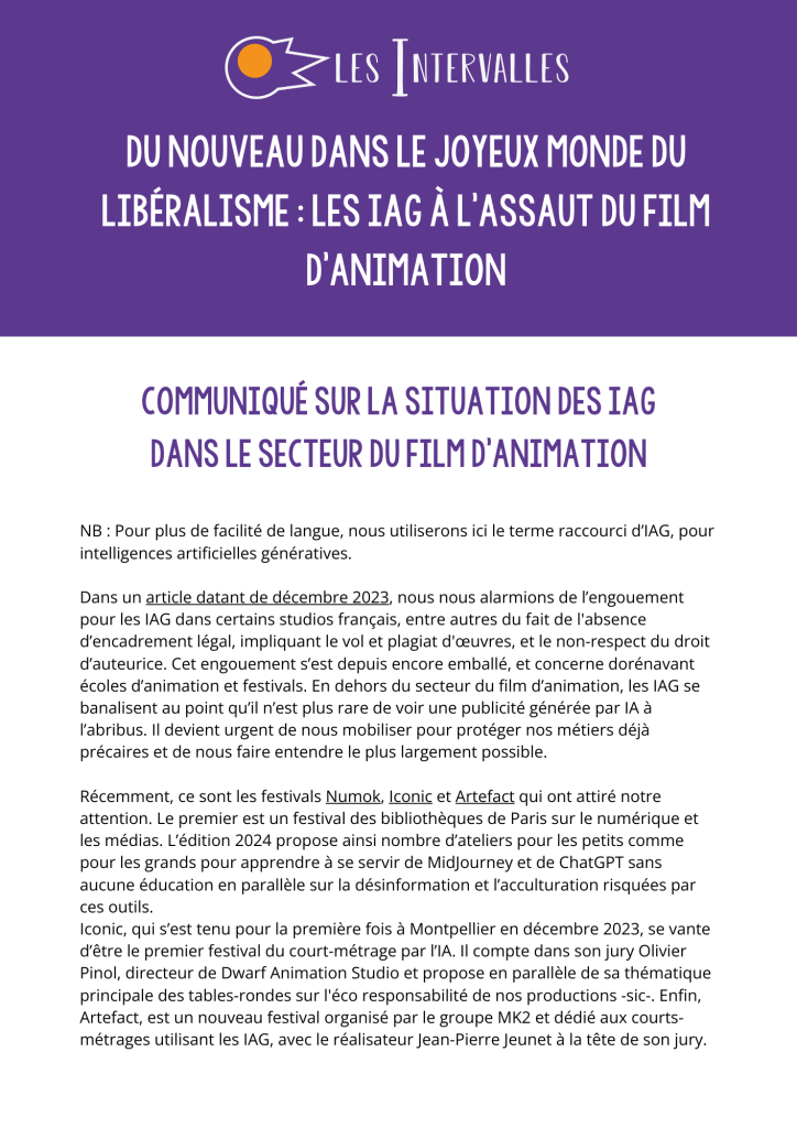 Du nouveau dans le joyeux monde du libéralisme : les IAG à l’assaut du film d’animation