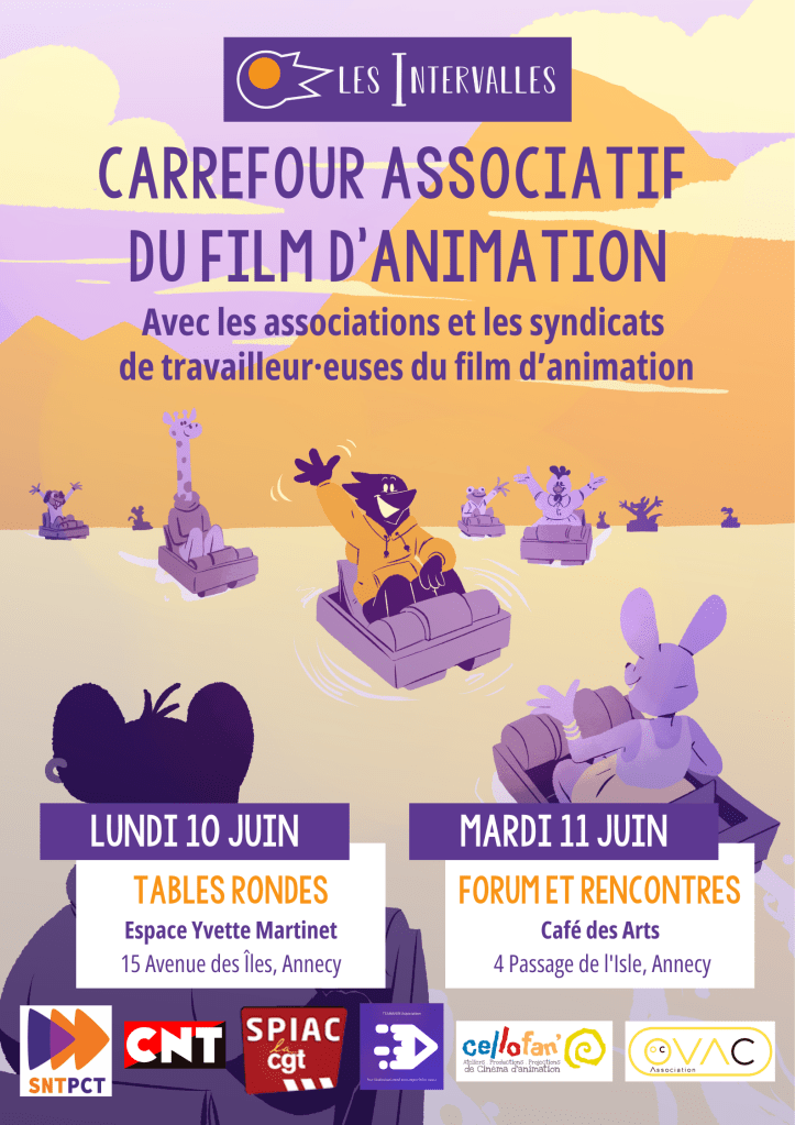 Les Intervalles ont organisé, durant le festival d’Annecy 2024, la première édition du Carrefour Associatif du film d’animation, regroupant collectifs, associations et syndicats de travailleureuses du secteur afin d’échanger autour de sujets d’actualités durant une journée de tables rondes, puis de forum associatif.