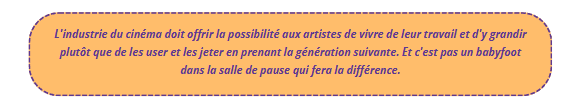 La précarité et l’instabilité ne devraient pas être inhérents à nos métiers, sous prétexte qu’ils découlent d’une passion. Ce n’est pas parce que nous aimons notre activité professionnelle que nos employeureuses peuvent en profiter pour abuser de notre bonne volonté et conscience professionnelle. Cet argument du métier passion est récurrent dans le secteur, utilisé pour nous culpabiliser, réduire nos salaires, encourager les heures supplémentaires non payées, et pour éviter de remettre en question le fonctionnement des productions.