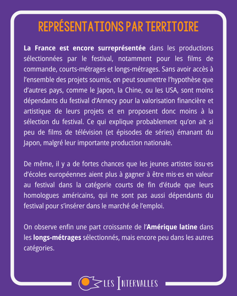 Dernière news avant Festival international du film d’animation d’Annecy : quelques statistiques de représentations genrées et nationales pour l’ensemble des projets sélectionnés par le festival !
