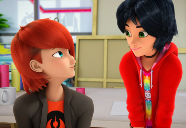 Ainsi, parfois, le flou, l’ambiguité de cette visibilité d’identité genrée et/ou sexuelle non canonique dans la série permet une réappropriation par les communautés queers et une porosité qui permet de laisser la place au public de comprendre le personnage comme il le souhaite. On peut prendre en exemple Odd, dans Code Lyoko, qui, par son design, n’est jamais genré, ou Candy, dans les Zinzins de l’espace, genré au masculin mais avec des codes visuels et de mise en scène plutôt féminins (très queer coded donc). Mais ces séries datent déjà, l’une de 2003, l’autre de 1997. Pourtant, rares sont depuis les séries d’animation françaises à avoir proposé des personnages équivalents. Miraculous Ladybug a, dans un premier temps, opté pour du queer coding et des allusions plus ou moins appuyées, à travers des relations et personnages secondaires comme Marc et Nathaniel, Rose et Juleka, avant de rendre canonique leur identité queer au bout de plusieurs saisons, et d’ajouter de nouveaux personnages queers tant adultes qu’adolescents, résultat d’une âpre lutte de l’équipe d’écriture pour leur faire une place réelle et visible.